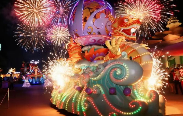 焰火花车巡游 :夜光精灵与焰火相配,童话照进现实