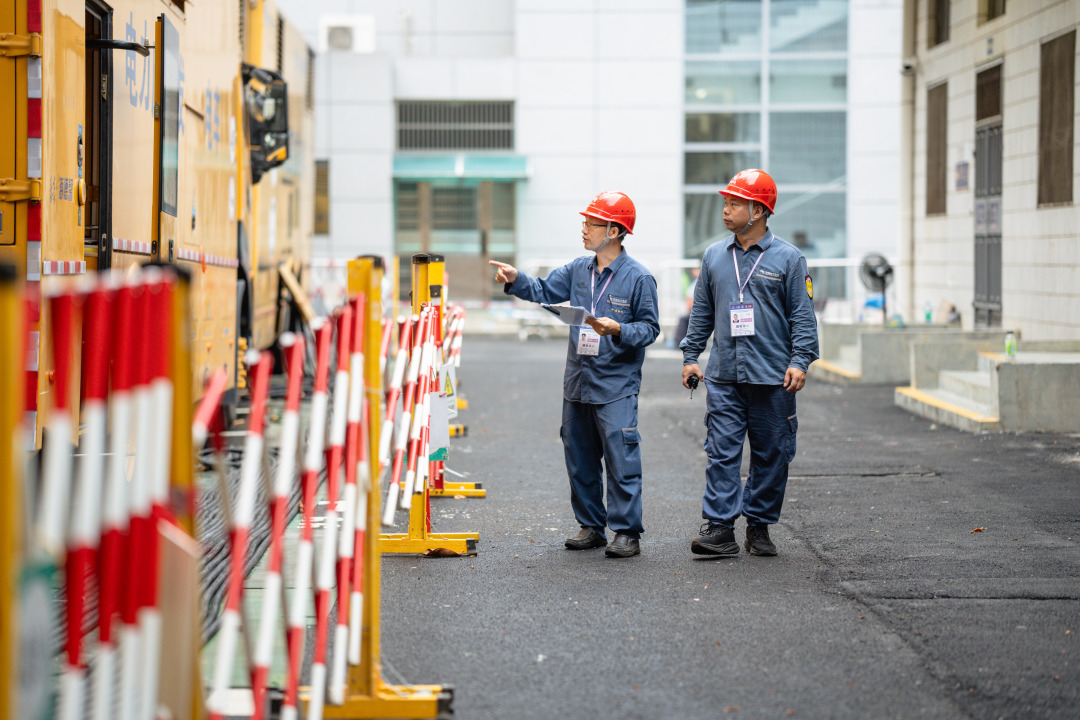 保供电专班对赛场的应急发电车进行全面调试,为赛事电力供应提供“双保险”。吴志彬 摄赛事期间,各值守点以高强度巡检守护供电安全,值守人员每半小时巡查设备、测负荷,每小时测温,对所有设备细致排查确保无死角;针对临时负荷接入这一关键环节,重点监测转播车、场地照明等大功率设备的温升与功率变化,严防非关键负荷接入重要回路,筑牢电力稳定防线。