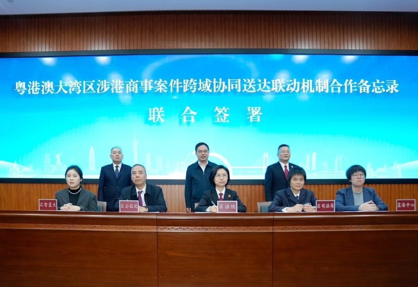 今后,涉港商事案件送达最快可节省6个月时间!12月17日,广州市南沙区人民法院(广东自由贸易区南沙片区人民法院)联合广州市南沙区司法局、广州市南沙公证处、深圳市蓝海法律查明和商事调解中心及广州市汇智蓝天国际法律与商事服务中心暨“一带一路”域外法查明(广州)中心共同签署《关于构建粤港澳大湾区涉港商事案件跨域协同送达联动机制合作备忘录》(以下简称《备忘录》),优化涉港商事案件送达程序,提升跨境商事纠纷解决质效,为跨境司法协作提供“湾区样本”。