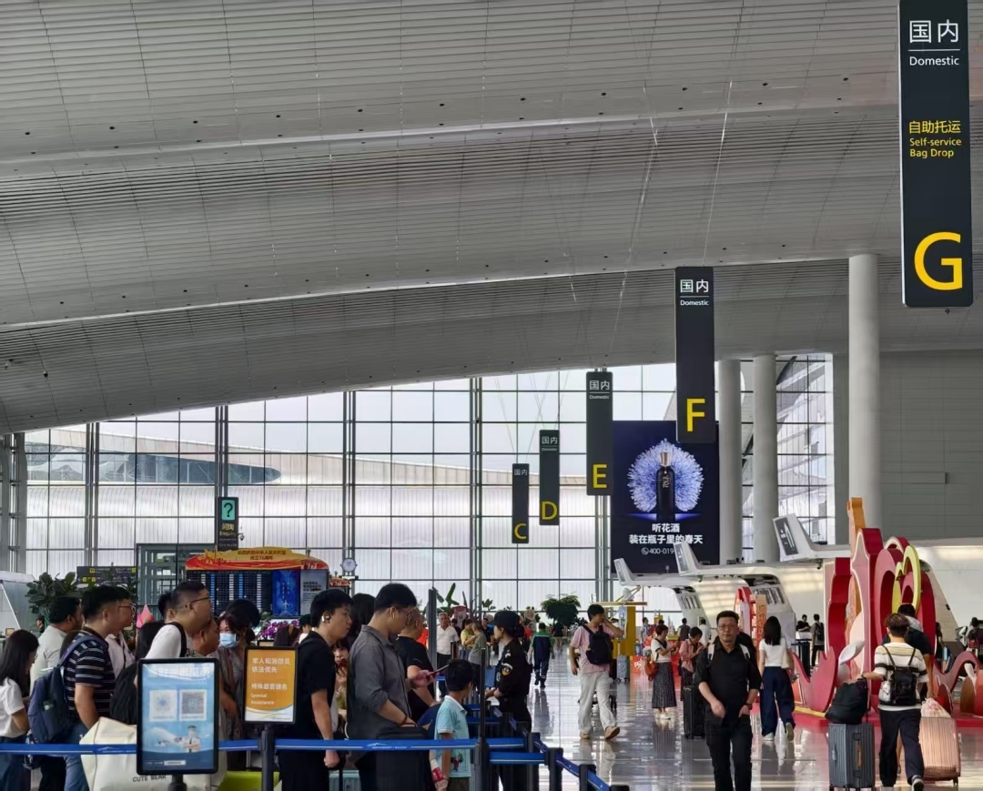 T3航站楼投运后,配备全流程智能化设施,从自助值机、自助行李托运到智能安检、智能引导,全方位提升旅客出行便捷度;高颜值的配套设施及高品质的服务体验,使其快速成为广大旅客出行首选及市民参观打卡网红地。