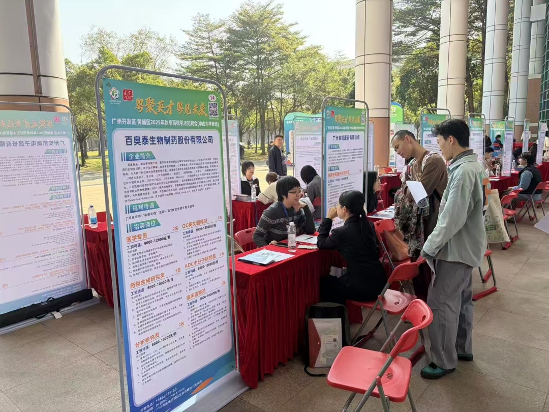12月16日上午,广州开发区、黄埔区“粤聚英才 粤见未来”2025秋季高校引才招聘会(中山大学专场)在中山大学广州校区东校园行政楼外广场举办。来自黄埔区的45家重点企业携707个优质岗位集中招聘英才,涵盖人工智能、生物科技、医学检测等多个领域,最高年薪超50万元,彰显了黄埔区以诚引才、以岗聚才的强劲吸引力。活动现场面试271人,其中本科36人,硕士195人,博士40人,初步达成就业意向38人。