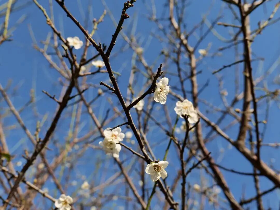 初花期:2025年12月24日前后开启,持续约10天,枝头初绽的梅花星星点点,藏着蓄势待发的惊艳;