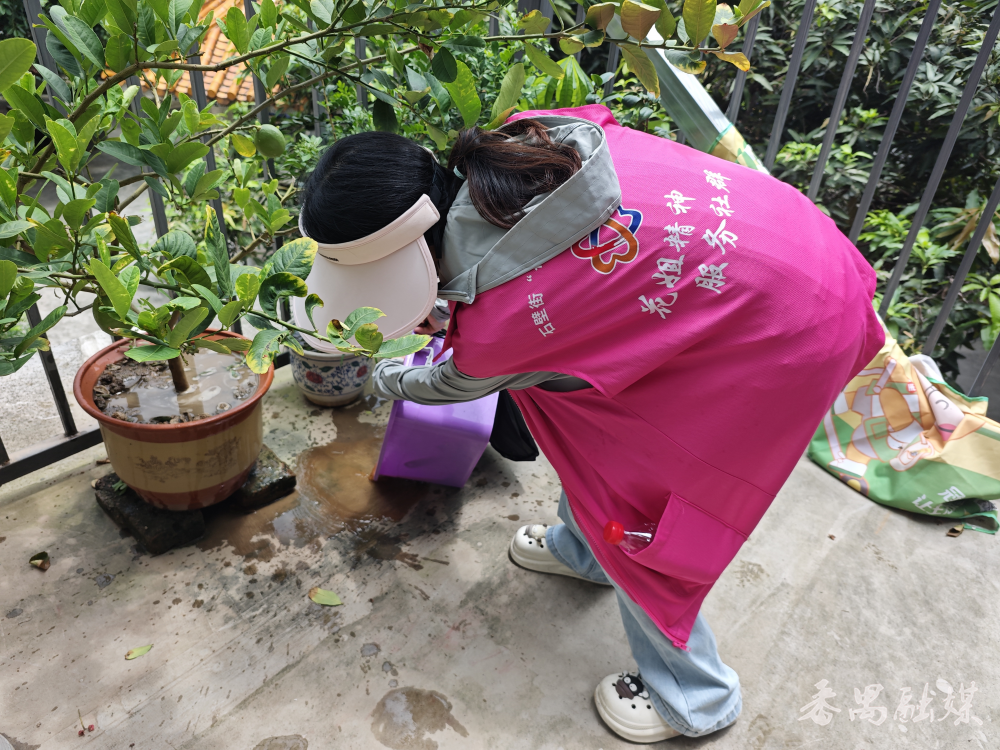 登革热、基孔肯雅热防控期间,石壁“花姐”入户倒积水