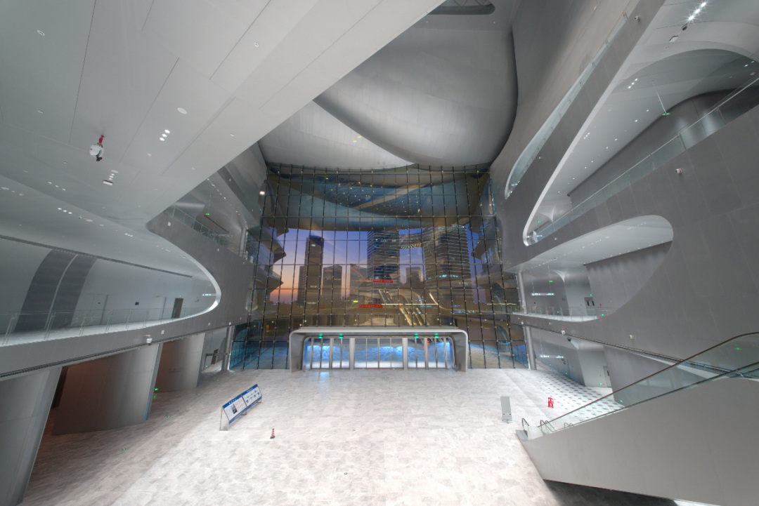 大湾区科学会堂深度融合岭南建筑文化与现代科技。规划布局传承岭南智慧,运用适应湿热气候的构造方式,融入岭南门、岭南窗等文化元素。建筑屋面为全国最大波浪起伏连续焊接不锈钢系统,结构体系创新采用全国首个连续波浪形单层刚性悬垂网壳。项目同步集成光伏一体化系统、精制钢与铝塑共挤幕墙、健康监测拉索幕墙、全国首例轻质陶瓷吸隔声天花及室内超大3D裸眼艺术屏。通过高效机房、智能调光照明、超低能耗建筑及双碳能源管理系统,实现绿色、节能、智慧的运行目标。