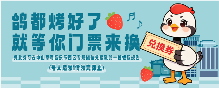12月27-28日,草莓音乐节将在中山西区岐江荟举办。记者从中山市西区街道办事处了解到,当地将以东道主身份,送出10000只地道非遗美食西区脆皮乳鸽,观众凭票即可领取兑换券,在当地指定商家可以无门槛使用。
