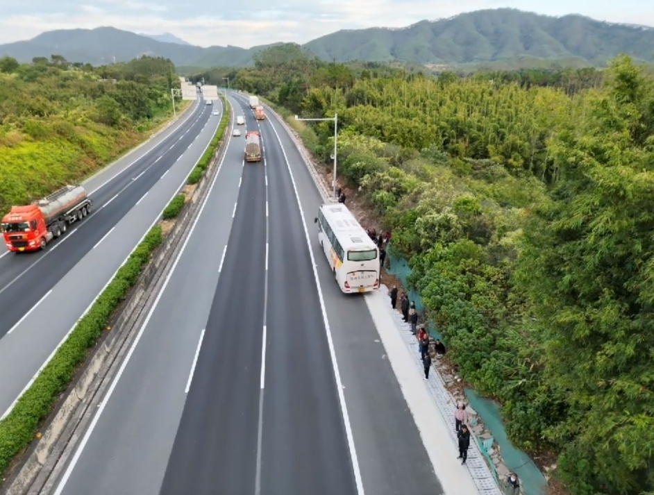 “请在路面的人员打开车辆双闪灯后,转移到安全位置等待救援。”近日,一辆大巴车停在广东交通集团所属乐广高速往韶关方向K218+300m的应急车道,现场多名乘客滞留。