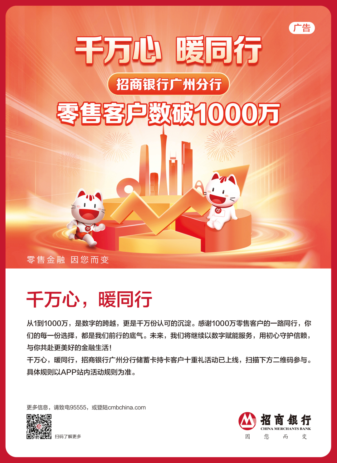 岭南大地,冬暖如春。在这片充满活力的热土上,招商银行广州分行(以下简称广州招行)交出一份亮眼成绩单——零售服务客户数已突破一千万。