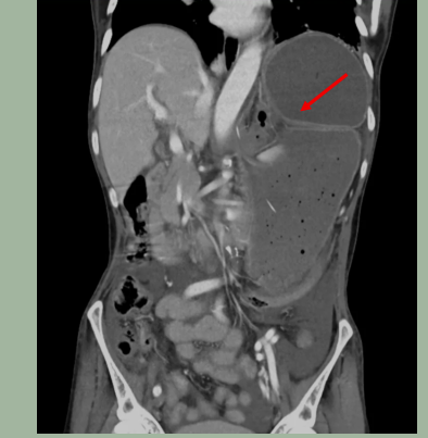 前一阵,59岁的肖姨(化名)进食后突然上腹剧痛、腹胀如鼓、恶心想吐却吐不出来。她到广州医科大学附属第三医院(以下简称“广医三院”)消化内科就诊。本以为是食物不干净吃坏了肚子,没想到CT影像结果出来,医生发现她的胃扭转了270度,胃幽门扭转到膈肌下,十二指肠也被牵拉旋转到了左侧,整个胃被气体和内容物撑得巨大,不仅自身濒临缺血坏死,还使得临近的十二指肠和胰腺受到牵拉和压迫,引发了急性胰腺炎。