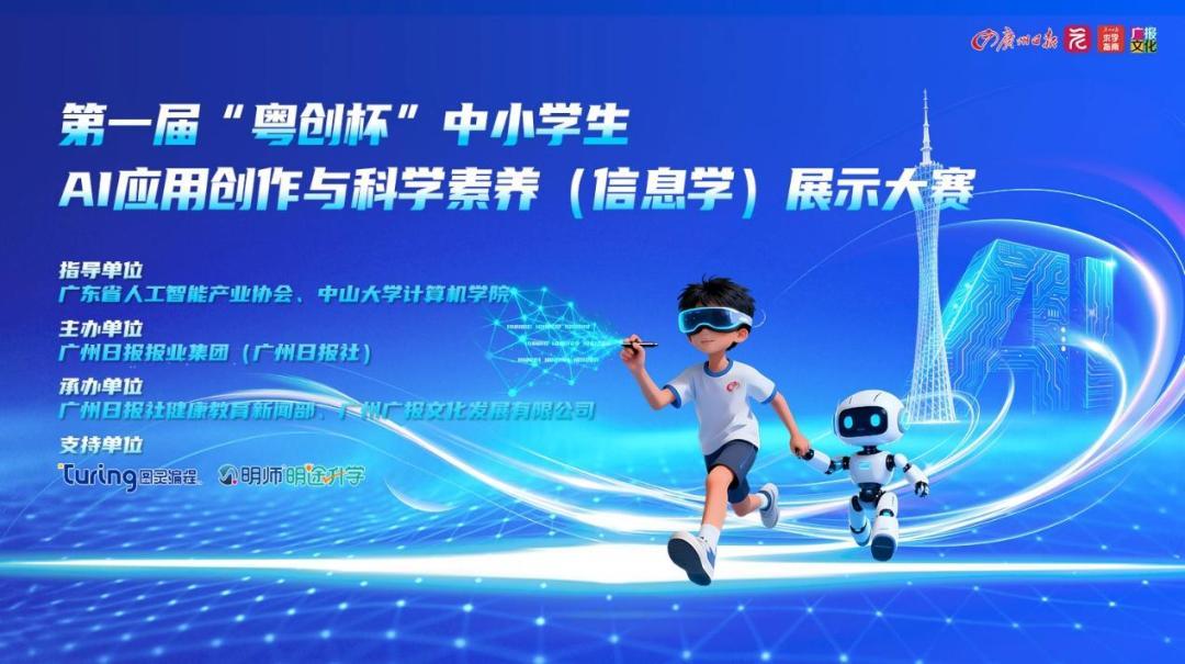 粤启未来,创见湾区。2025年第一届“粤创杯”中小学生AI应用创作与科学素养(信息学)展示大赛已经落幕,本届大赛由广州日报报业集团(广州日报社)主办,在广东省人工智能产业协会与中山大学计算机学院的指导下,吸引了粤港澳大湾区超过7000名中小学生踊跃参与,为广大青少年提供了一个激发创意、锤炼思维的平台。