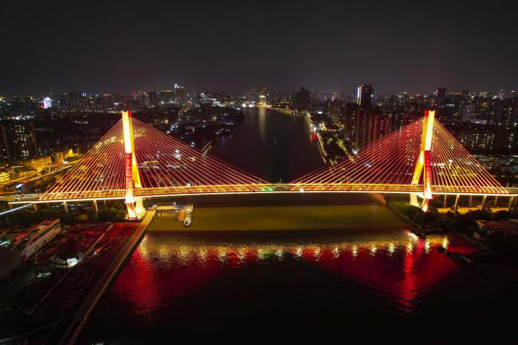 交通保障的坚实底气,还基于硬件设施的全面焕新,这些升级既为赛事护航,更扎根民生需求。全市累计完成59个道路改造项目,135万平方米沥青摊铺让东风路等重点路段平整度大幅提升;东南西环高速、机场高速完成路面整治与标线翻新,鹤洞大桥以“鹤舞珠江”为主题打造智能照明系统,桥体光影与珠江潮汐相映成趣,成为惠及市民的民生工程。