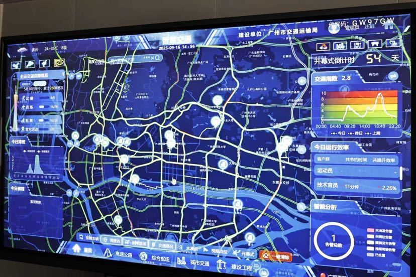 交通保障的底气,既源于周密规划,更离不开智慧技术的硬核支撑。广州赛事期间的智慧交通系统,并非为盛会量身打造的“临时工程”,而是“十四五”以来交通数字化建设成果的集中应用,其核心支撑是全国首个超大城市综合交通集疏运信息化平台,该平台整合数据超8000亿条、视频数十万路,早已服务于春运等大客流保障。赛事期间,这套“智慧系统”通过场景适配实现高效赋能,构建“大屏看全局、中屏管细节、小屏收指令”的三屏联动模式,指挥中心可直接匹配车辆、司机与接送需求,驾驶员通过小程序实时接收指令。未来,这套系统还将深化升级,应用于300余公里路网智慧化改造,让赛事锤炼的技术转化为市民出行的“长久帮手”。