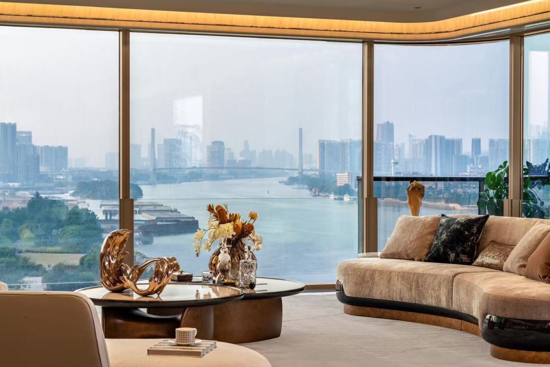项目近期推出的“港湾壹号”A1栋,与保利旗下百亿级豪宅玥玺湾同源设计,整栋采用一层一户布局。值得一提的是,建筑距珠江直线仅约60米,可实现270°三面全景看江。由于采用点柱结构,全屋“0飘窗”,超百平方米的客餐厅是无承重墙的大开间设计,支持定制化空间布局。
