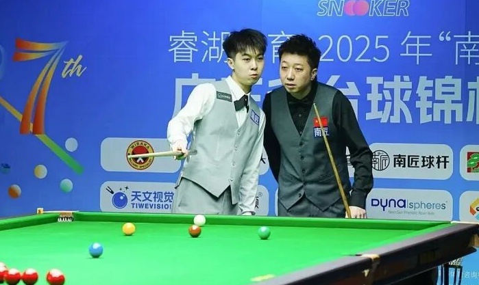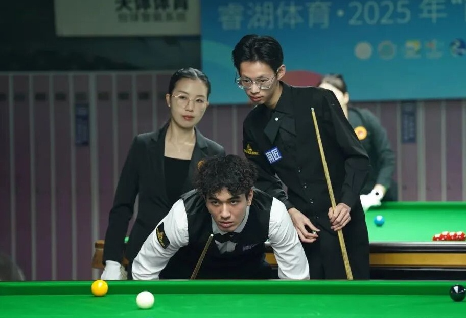 中青赛北京总决赛少年组冠军官翰林在CBSA世界斯诺克华南分院队两位教练的助力下,首轮3比2险胜,次轮配合愈发默契,以3比0再下一城。