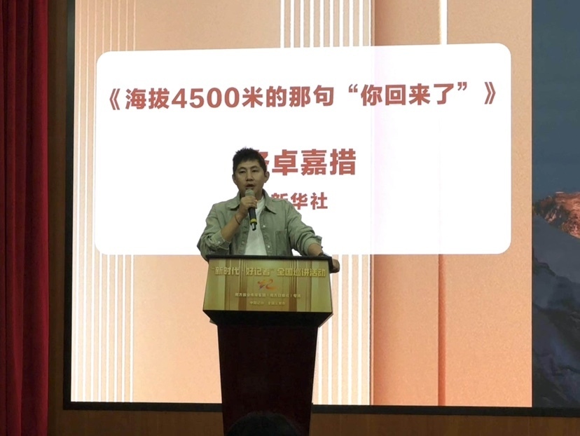 新华通讯社西藏分社记者洛卓嘉措带来了日喀则6.8级地震中的生死坚守故事。在海拔4500米地区,他记录下定日县地震后赶赴震中的分秒必争,以及零下13摄氏度寒夜里的坚守。当他讲到灾后回访时,一名小女孩跑来抱住他喊“你又回来了”的那一刻,会场格外安静——这是对记者真实记录时代的最朴素、最珍贵的肯定。