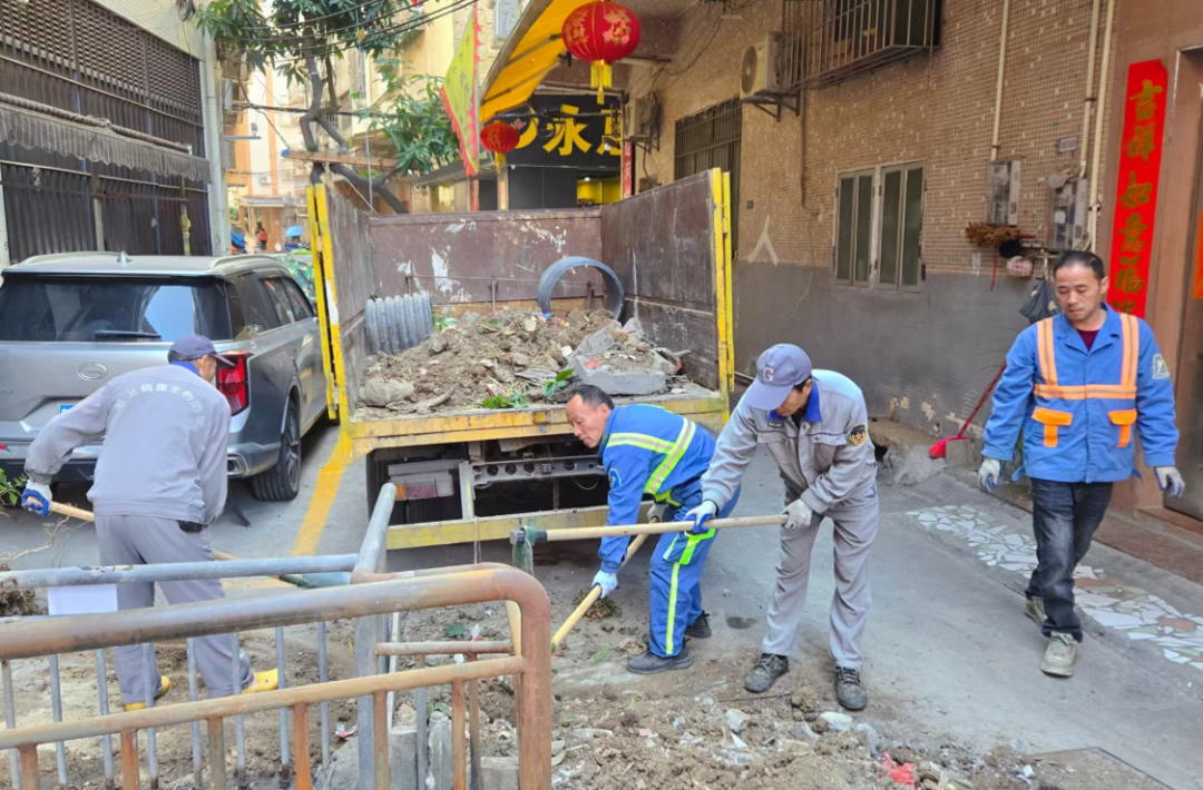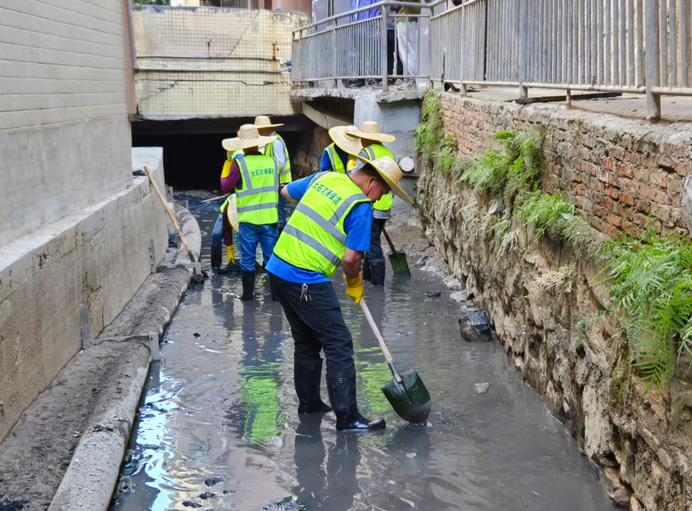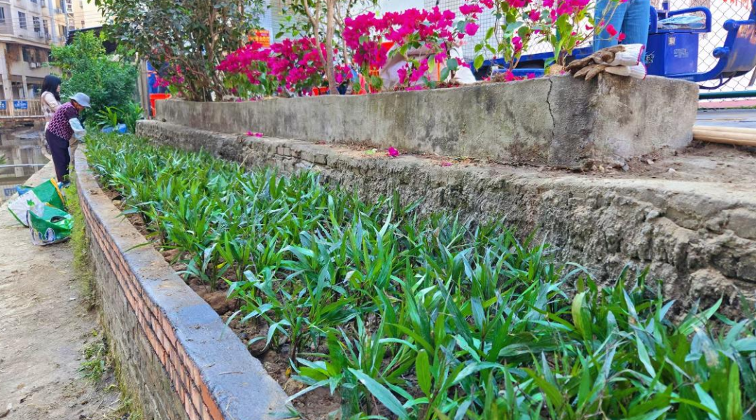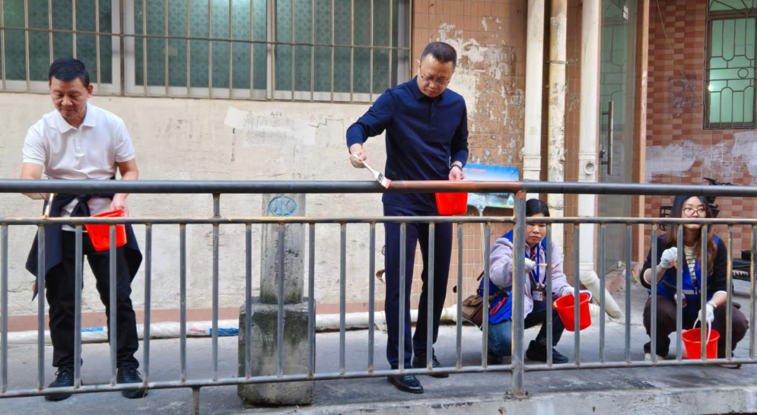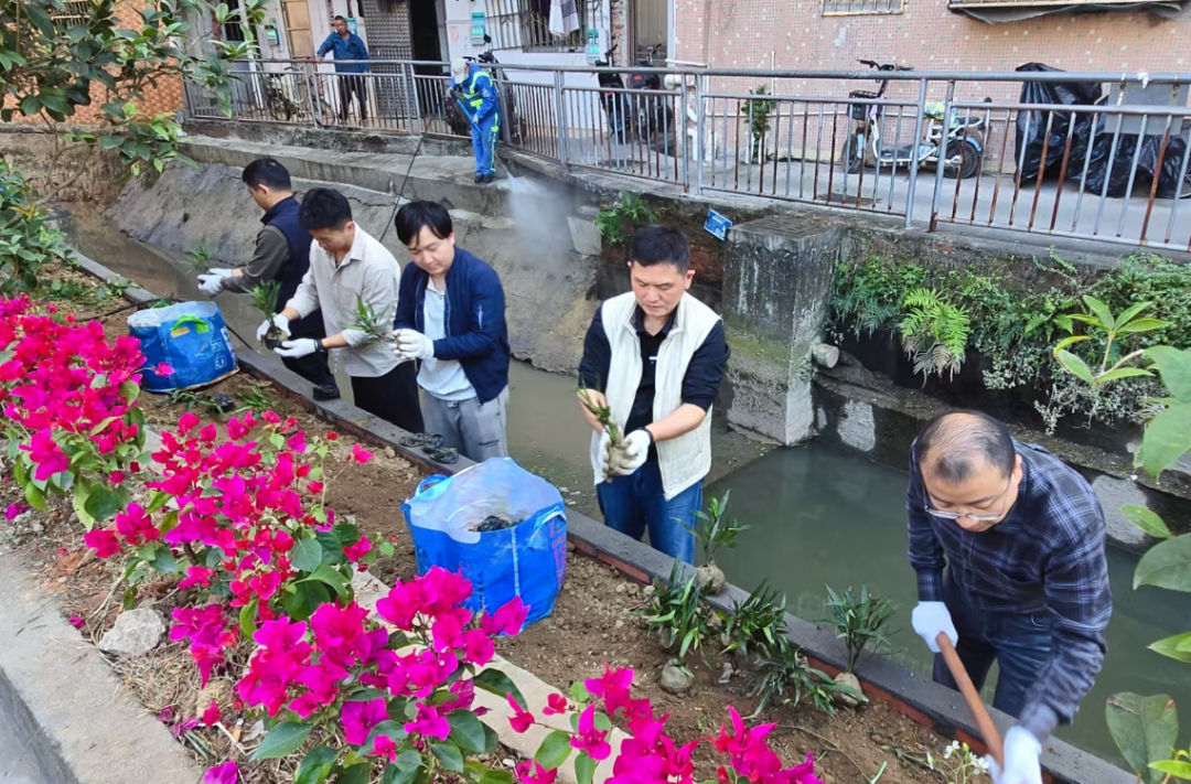 仪式结束后,全体参与人员按照预先分组,投身到热火朝天的护河行动中。环境秩序组、河涌保洁组、景观提升组、绿化美化组和入户宣传组五个小组,在大山东涌沿线同步开展垃圾清理、护栏粉刷、花草种植、规范停车划线及入户宣传等具体工作,将倡议与承诺转化为即刻行动。