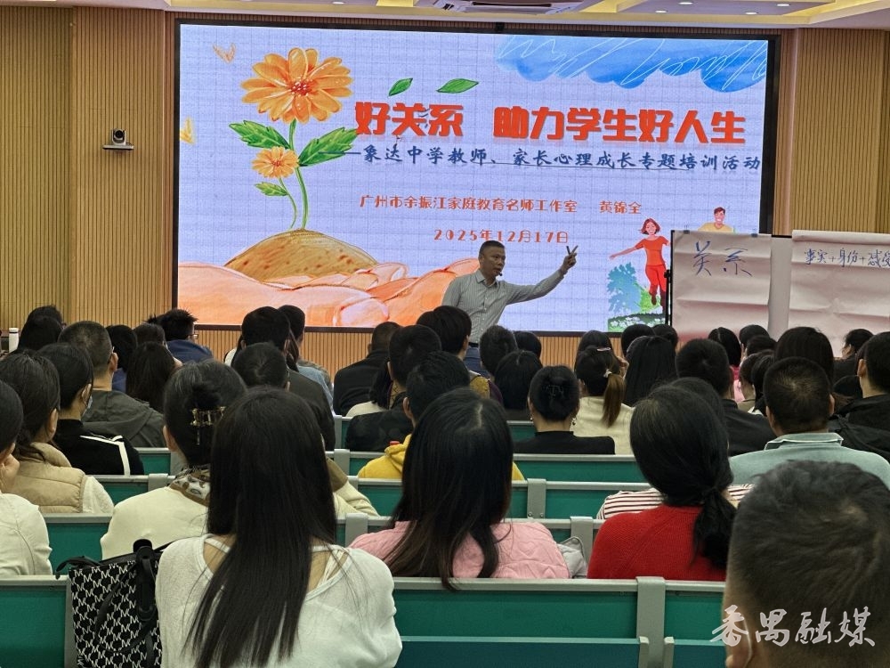 12月17日,番禺区沙湾象达中学举办家庭教育专题培训讲座活动,学校老师和家长共600多人参加培训。