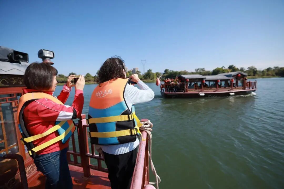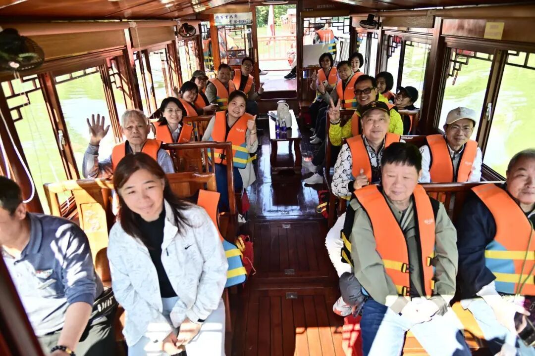 结束赠书活动后,“银龄推荐官”抵达荔韵旅游驿站,开启“最美增江游”水韵生态之旅。游船缓缓驶离码头,“银龄推荐官”或立于船头拍摄美照,或安坐船中凭栏远眺,或与同行伙伴轻声交谈、合唱歌曲,沉醉于眼前这幅流动的生态画卷。