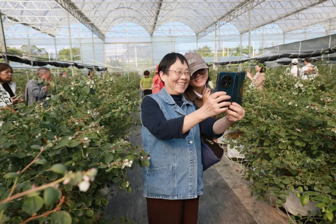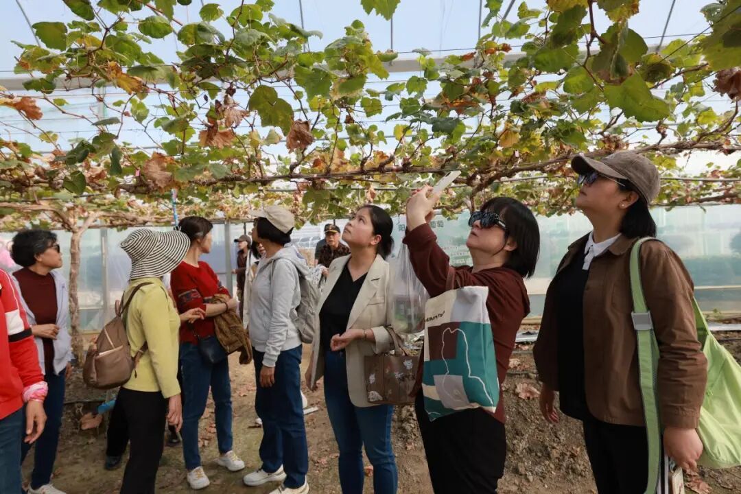 随后,队伍抵达荔湖街乡丰农园,开启现代农业科技探索之旅。作为粤港澳大湾区“菜篮子”工程认证基地,位于荔湖街辖内的乡丰农园拥有8000亩高端水果种植区,主打蓝莓、阿鲁斯网纹瓜、阳光玫瑰葡萄等名特优产品。