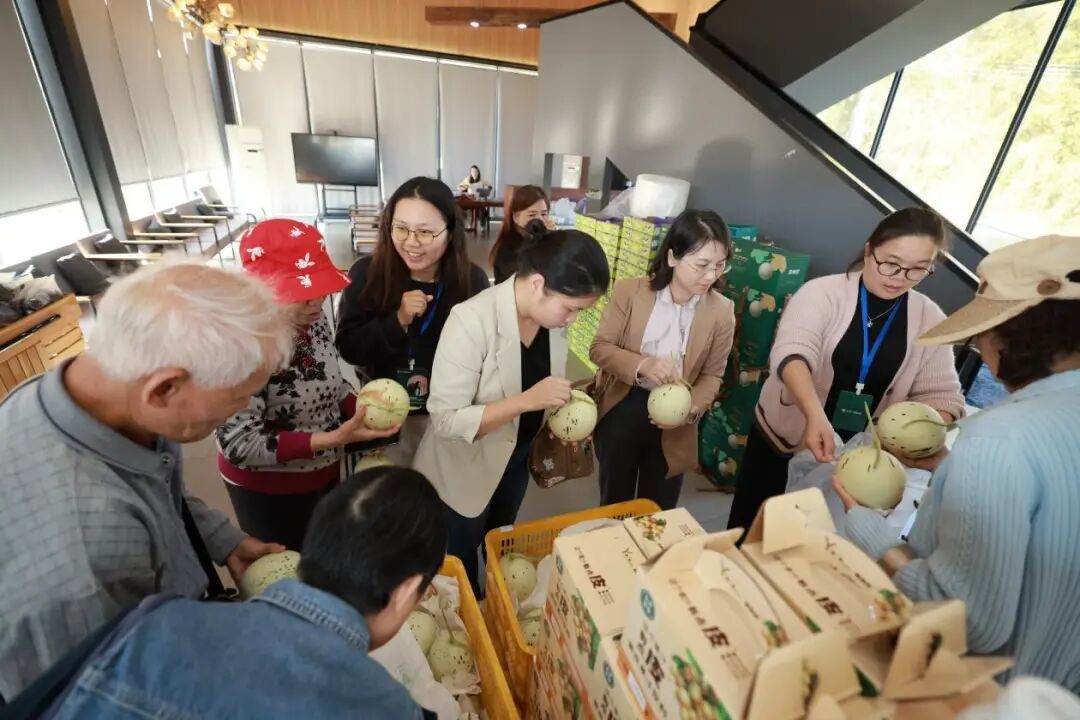 “银龄体验官”在接待厅品尝了新鲜采摘的应季水果,在智能温控大棚内了解该园的农业专利和培育技术。“银龄推荐官”听得饶有兴致,不时提问:“这种网纹瓜的甜度能达到多少?”“种植葡萄选用什么肥料?”“智能系统多久需要维护一次?”技术人员一一耐心解答。离开园地前,“银龄推荐官”现场争相选购标有乡丰农园商标的水果好物,表示要“把这份甜蜜分享给家人”,以实际行动践行“消费帮扶”宗旨。