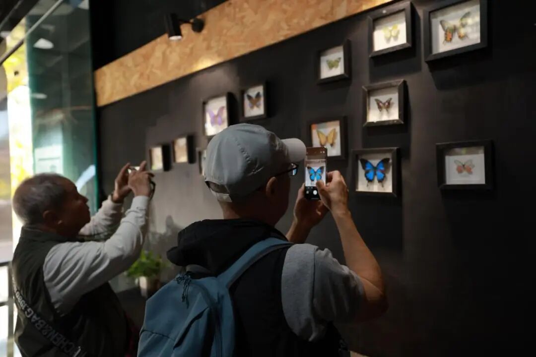 “银龄推荐官”在哥特爬宠营地观看动物标本。