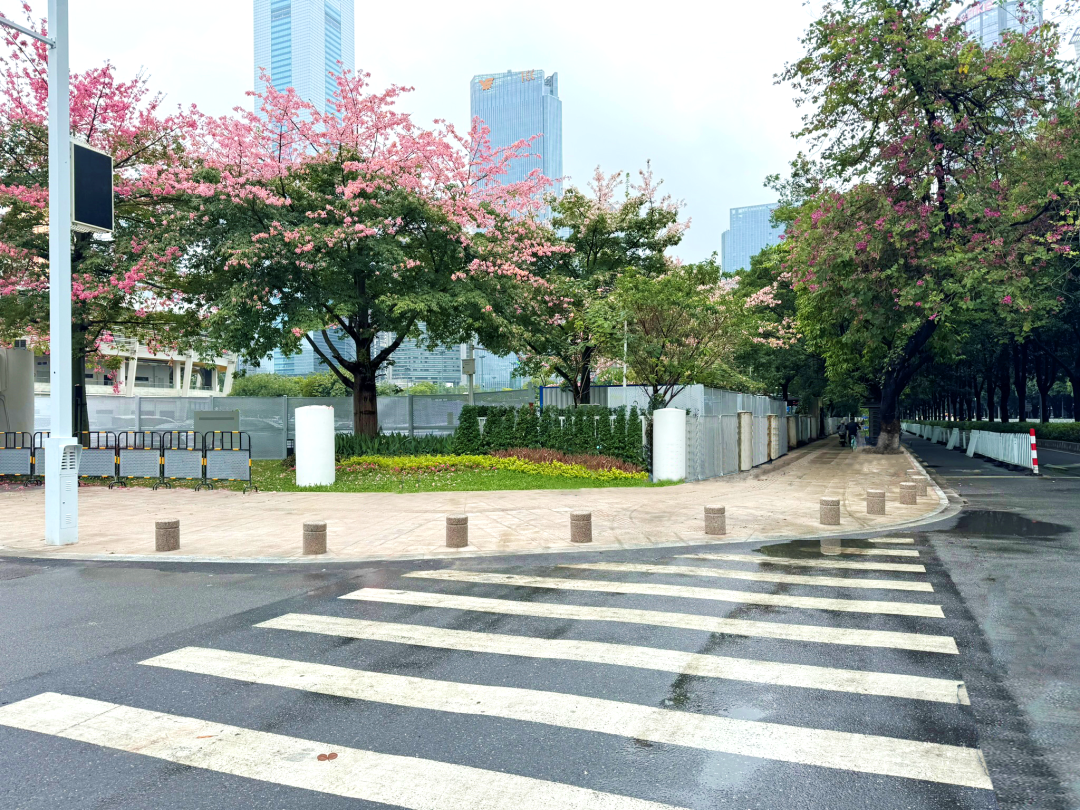 在体育中心地铁站D2出入口,改造拆除出入口两侧花基、围栏及柱墩,对原有花基进行铺装硬化,精简设施、释放慢行空间,新建无障碍坡道,实现地铁侧与市政侧一体衔接,让通行市民与地铁乘客流线有序分离,不同群体都能“丝滑”进站,实现“最后一米”接驳流线连贯高效。
