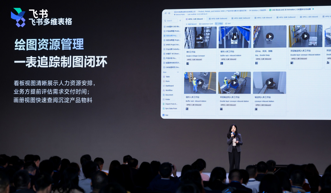 全球箱式仓储机器人系统专家——海柔创新市场总经理胡斐晗则提到,飞书不仅支持其全球团队跨语言协作,解决了研发管理的难题。通过飞书项目落地IPD流程提升了30%的交付效率。在知识管理层面,企业内部的10万余篇精华文档借助飞书转化为“超级外脑”,知识流转效率提高30%。
