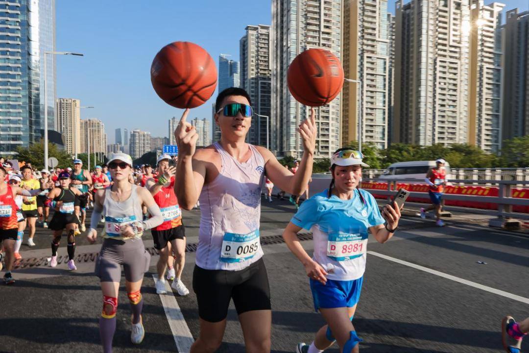 比赛日现场,天河体育中心周边便已成为欢乐的海洋。除了全力竞速的精英跑者,众多市民也以创意装扮表达着对运动的热爱——有身着各式蔬菜造型的跑者,也有边运球奔跑边挥洒活力的篮球爱好者,一幕幕生动场景诠释着广马“包容与拼搏”并存的赛事精神。