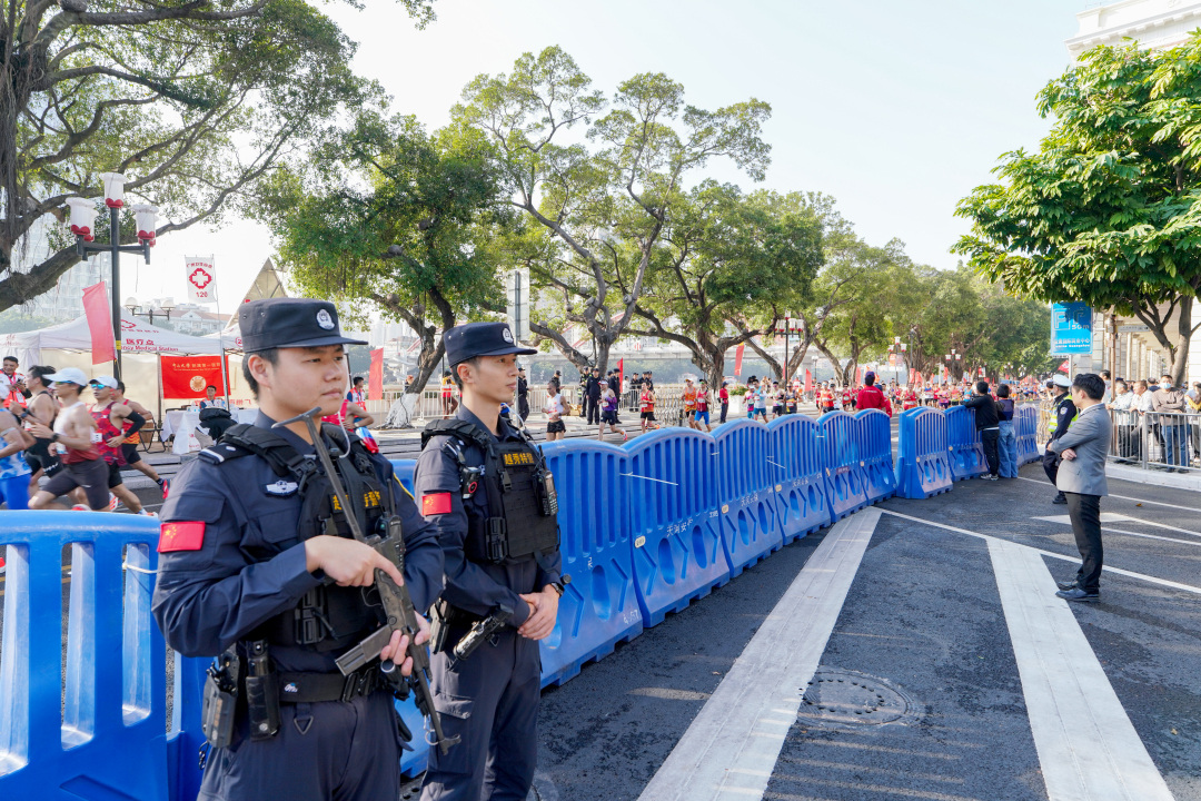 聚焦赛事核心区域防控,广州警方将集结区、起跑区、仪式区及全程终点划定为核心防控区,科学规划现场功能分区与人员流线,设置充足指引标识保障车辆有序通行。安保力量严格落实“定人、定岗、定职责、定措施”原则,对“一江两岸”赛事路段实施分区分段防控,全力守护沿线治安与交通秩序。