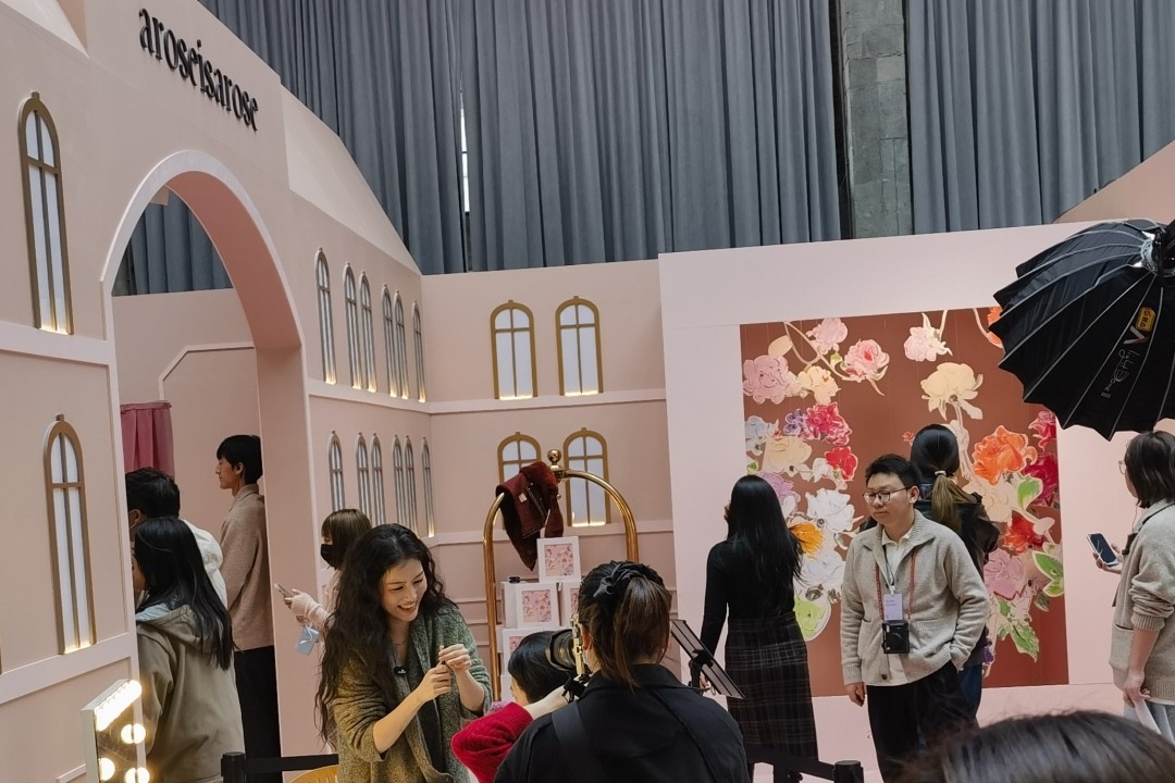 美妆体验区前同样人气十足,女孩们试色、补妆,分享心得。“很多项目需要预约才能体验,这个化妆项目排队就行,所以我来凑个热闹。”一名女士告诉记者,“主要还是来凑热闹的,看看有什么羊毛可以薅。”