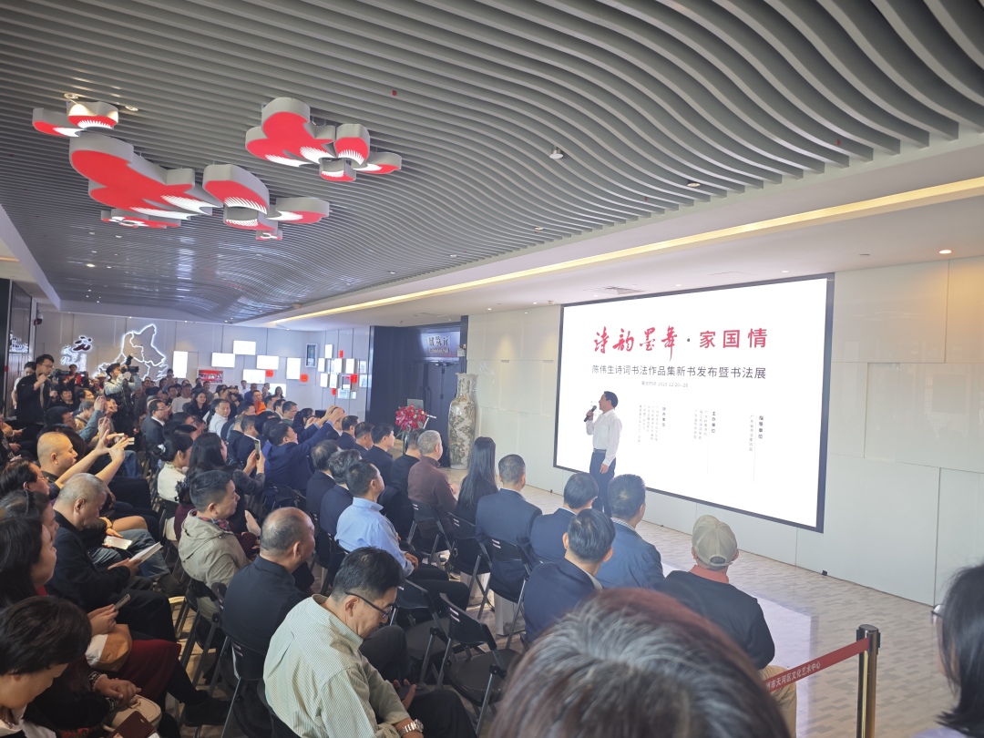 2025年12月20日,由广东岭南诗社、珠江月诗词学会、广东省写作学会联合主办的《诗韵墨舞·家国情》陈伟生诗词书法作品集新书发布暨书法展在广州天河区文化艺术中心开幕。来自省市各级机关的领导、各界文化艺术家、文艺爱好者及嘉宾约200人参加了活动。