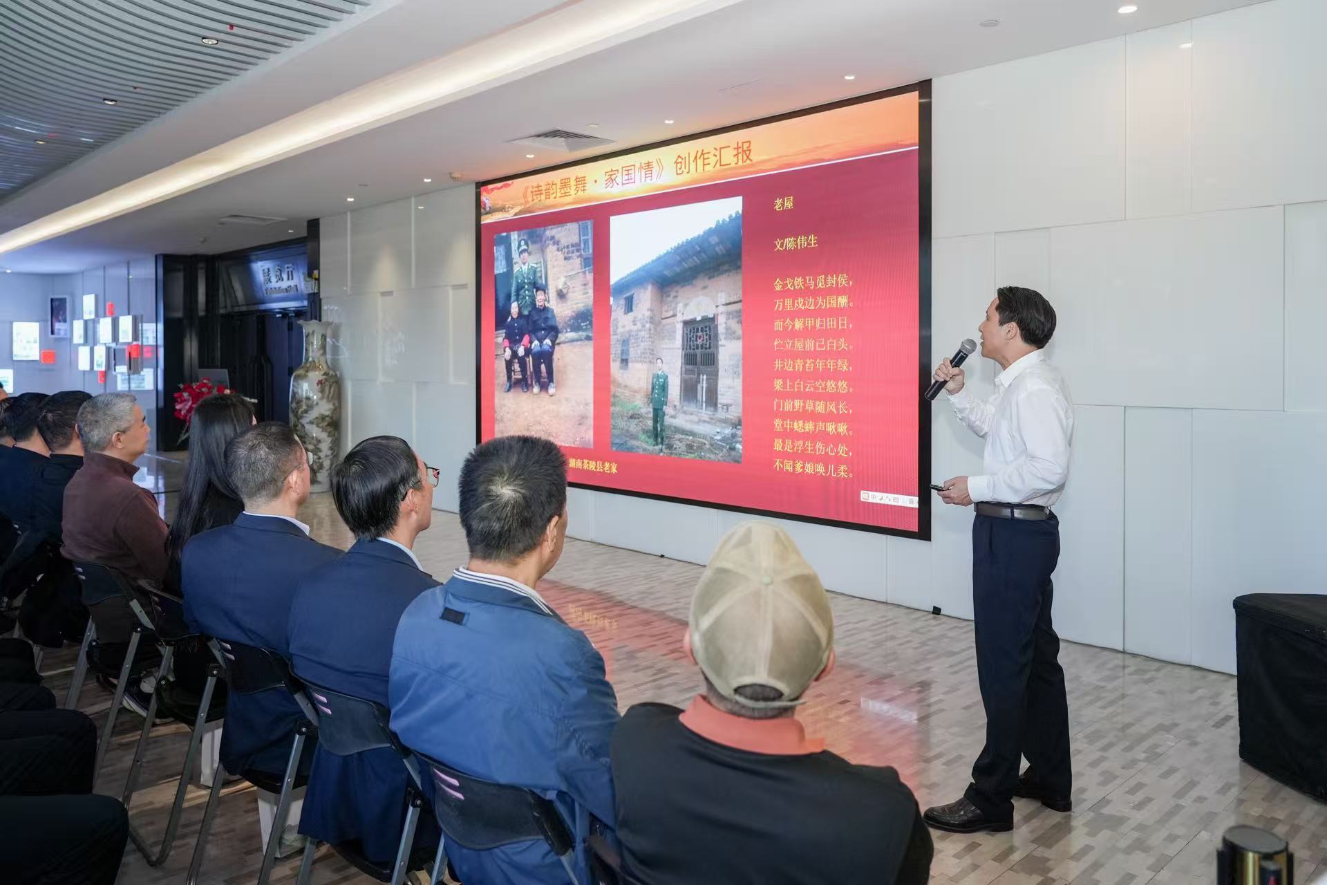 开幕式上,陈伟生从“完成一个父辈的夙愿”、“赓续一份家国情怀”、“挺膺一份责任担当”、“践行一个行动誓言”四个方面,激情阐述了《诗韵墨舞·家国情》的创作历程,并现场通过PPT展示了其创作的诗词与书法作品。其情感真挚,诗书合璧,作品精美典雅。