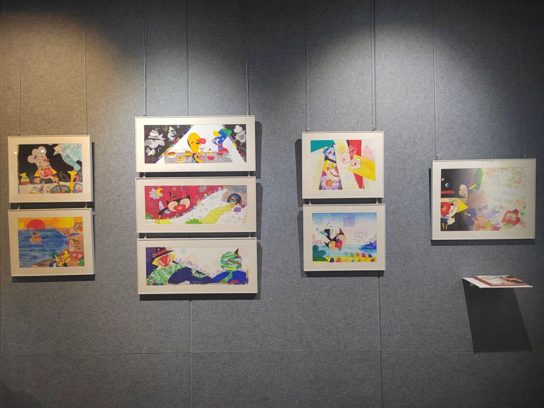 第二部分“图像里的故事正在发生”以绘本、插画与叙事图像为主体,设置“故事共创区”,吸引了众多亲子家庭共同完成属于自己的绘本故事。孩子们在父母的陪伴下,发挥想象力,创作出一页页充满童趣的艺术作品。