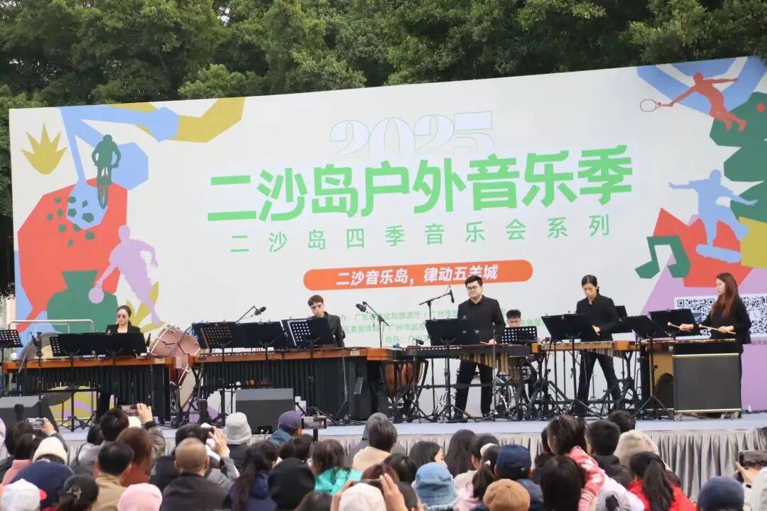 当金色铜管邂逅万千节奏,在二沙岛草坪上空汇聚成温暖人心的声场,2025“二沙岛户外音乐季”在广州交响乐团的打击乐铜管重奏中落下帷幕。以天为幕,以地为席,在广州交响乐团常任指挥崔琳涵执棒下,广交铜管五重奏与广州打击乐团以音乐为舟,带来一场超越时空的铜管节奏之旅。近千名观众在冬日暖阳下共度惬意午后,邂逅城市中的音乐浪漫!