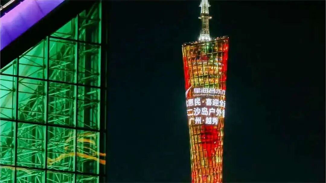 10月26日,开幕音乐会由马帮乐队带来首秀,摇滚、爵士与广西传统山歌碰撞,竹笛、唢呐与现代乐器交融,如一卷浓墨重彩的西南音乐诗篇。主唱叶宏钢的粗犷嗓音与唢呐、民族弹拨乐交织,更带着观众玩起了“对歌”,让现场歌声与笑声齐飞。开幕当晚,“二沙岛户外音乐季”的公益宣传语点亮广州塔,成为珠江两岸璀璨夜色中亮丽的一景。