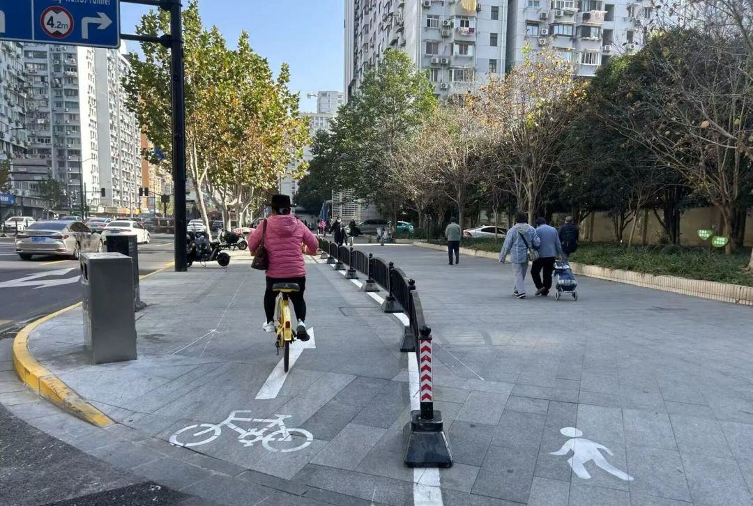 陆家浜路在恢复非机动车道前,这些路段上非机动车与机动车混行、骑行人被迫上人行道甚至逆行的场景屡见不鲜,安全隐患突出。记者看到,改造后,明确的非机动车路权不仅规范了交通秩序,其恢复后还串联起豫园、老西门等多个重要区域,成为一条“慢行主动脉”,与周边路网形成有机衔接。
