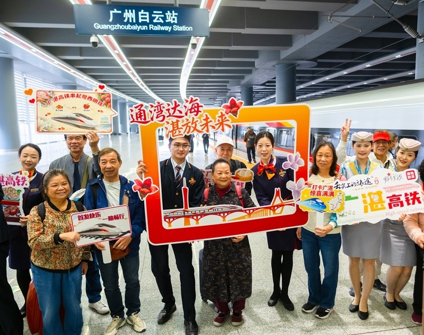 当日上午,广州白云站暖意融融。10时30分,G9785次复兴号列车准时驶出站台,向湛江方向疾驰而去;同一时间,G9786次列车从湛江北站鸣笛启程,一路向东驶向广州。汕头站同样人声鼎沸,G9787次列车从焕然一新的站房呼啸而出,奔赴羊城。3趟高铁分别从广州、湛江、汕头三地同时发出,再加上1项铁路枢纽工程破土动工,铿锵奏响了“轨道上的大湾区”建设的激昂乐章,尽显湾区发展的澎湃动力。