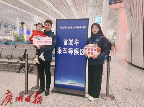 广湛高铁建设者与他们的小宝宝一同体验首趟列车。