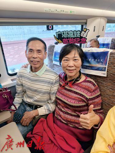 乘客林阿姨搭上首趟广湛高铁非常开心。
