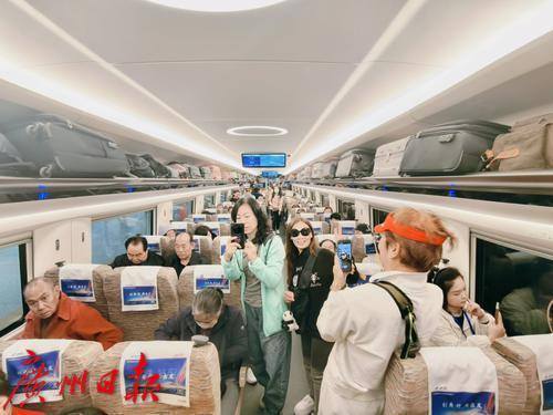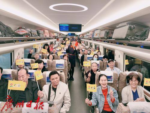 乘客们在车上欢呼“到湛江吃湛江鸡”。