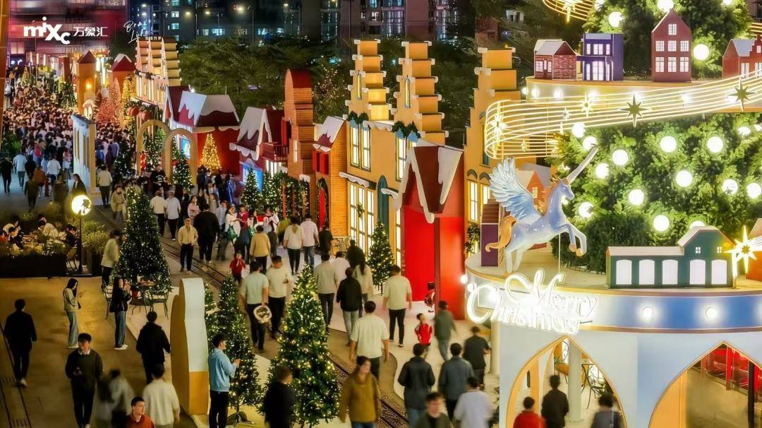 更名后,该商业项目以比利时布鲁日街景为灵感,打造了2000平方米沉浸式“鎏星小镇”,设置布鲁日小镇、雪境花园、星桥、星愿之门、飘雪许愿池等六大主题场景,并联动绮遇飘雪、舞动少年、音乐会等互动活动,实现美陈场景与文化体验的深度融合,传递节日氛围与文化魅力。
