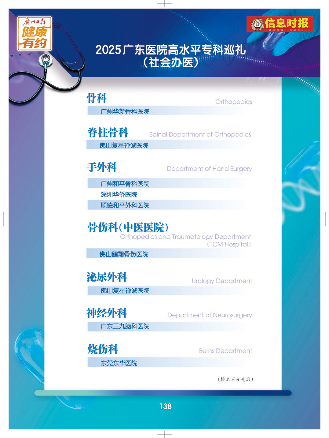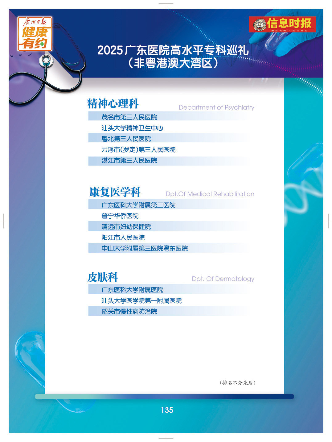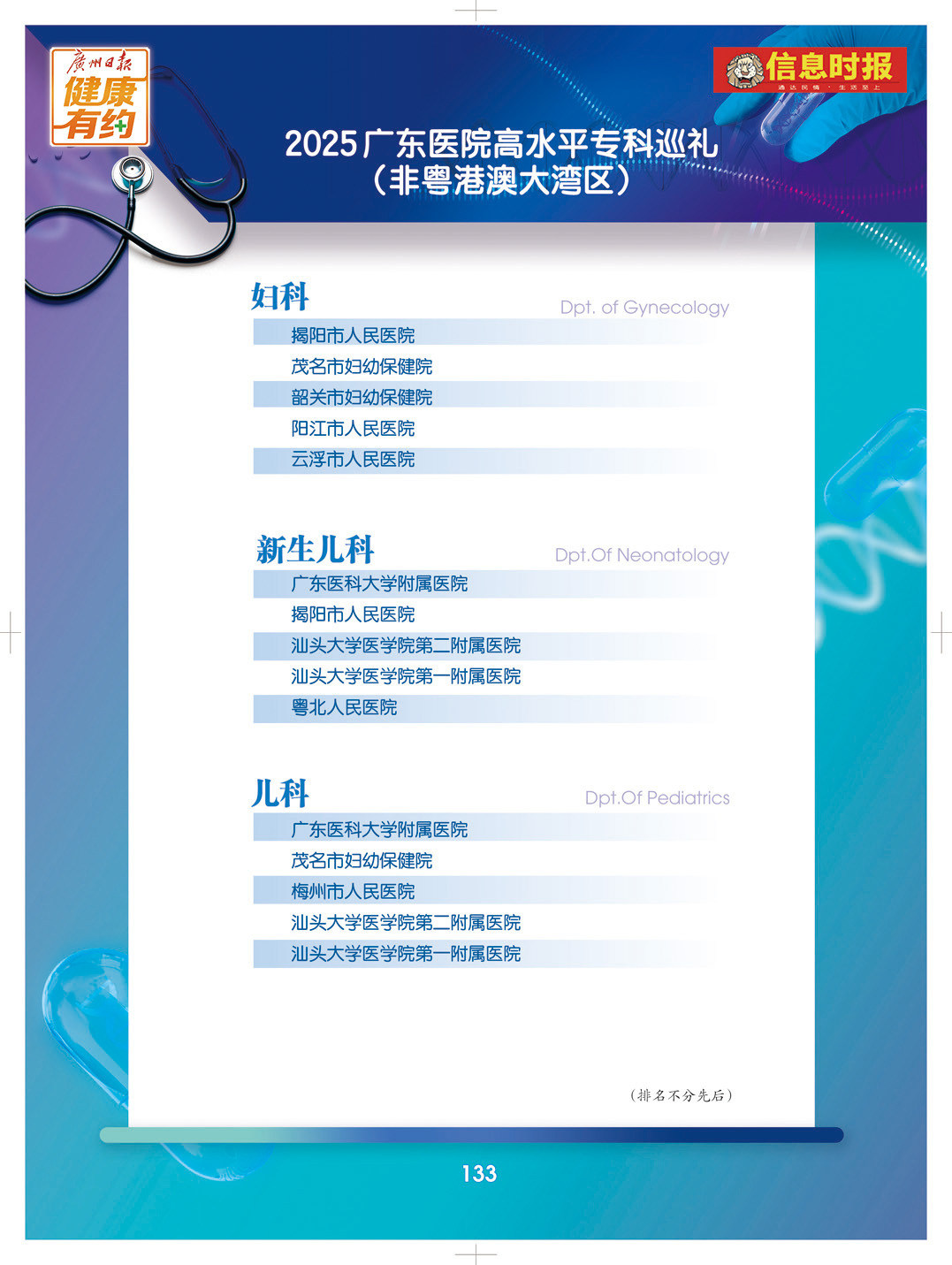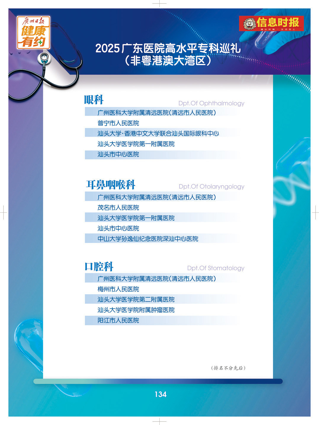 粤港澳大湾区(广东省内)97家三级医院建设的高水平专科721个、省内其他地区37家三级医院建设的高水平专科145个进入推荐名单,并首次对25家社会办医机构建设的32个优质专科进行展示,旨在为公众呈现一份更全面、更精准的“实力图谱”。