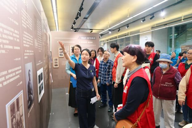 具有丰富讲展经验的是首次尝试无障碍观展口述的志愿者尚燕穗。她仔细查阅相关资料、扩展知识储备,从托尔斯泰的肖像神态到历史照片的场景细节,从著作封面的设计到与中国相关的文献展示等,迅速理清思路、撰写文稿,结合团队审核意见打磨修改稿件,经过数轮试讲甚至实地模拟,寻找口述节奏,整合普通导赏,最终形成了成熟的口述讲解方案。