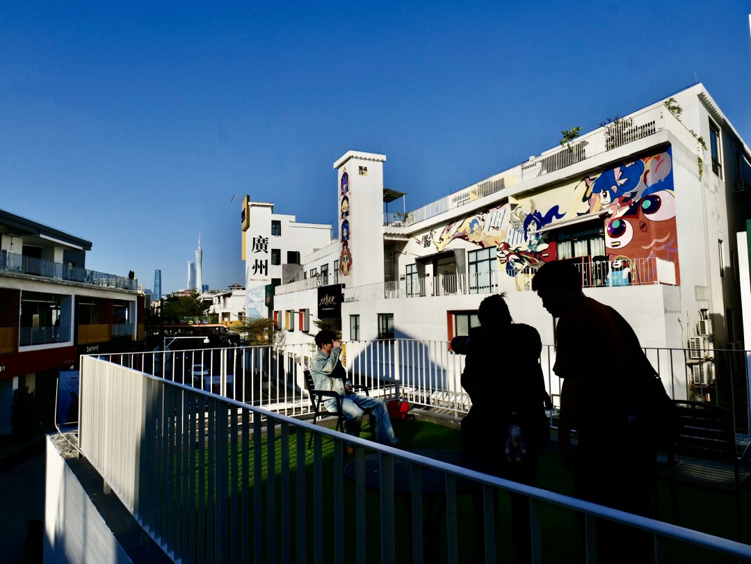珠江琶醍啤酒文化创意艺术区里,一座高耸的烟囱上,“广州”二字格外醒目。下方缀着广州塔、五羊雕塑等地标图案,与周围的钢铁构件、斑驳墙面、彩色涂鸦相映成趣,工业风与潮流感拉满。