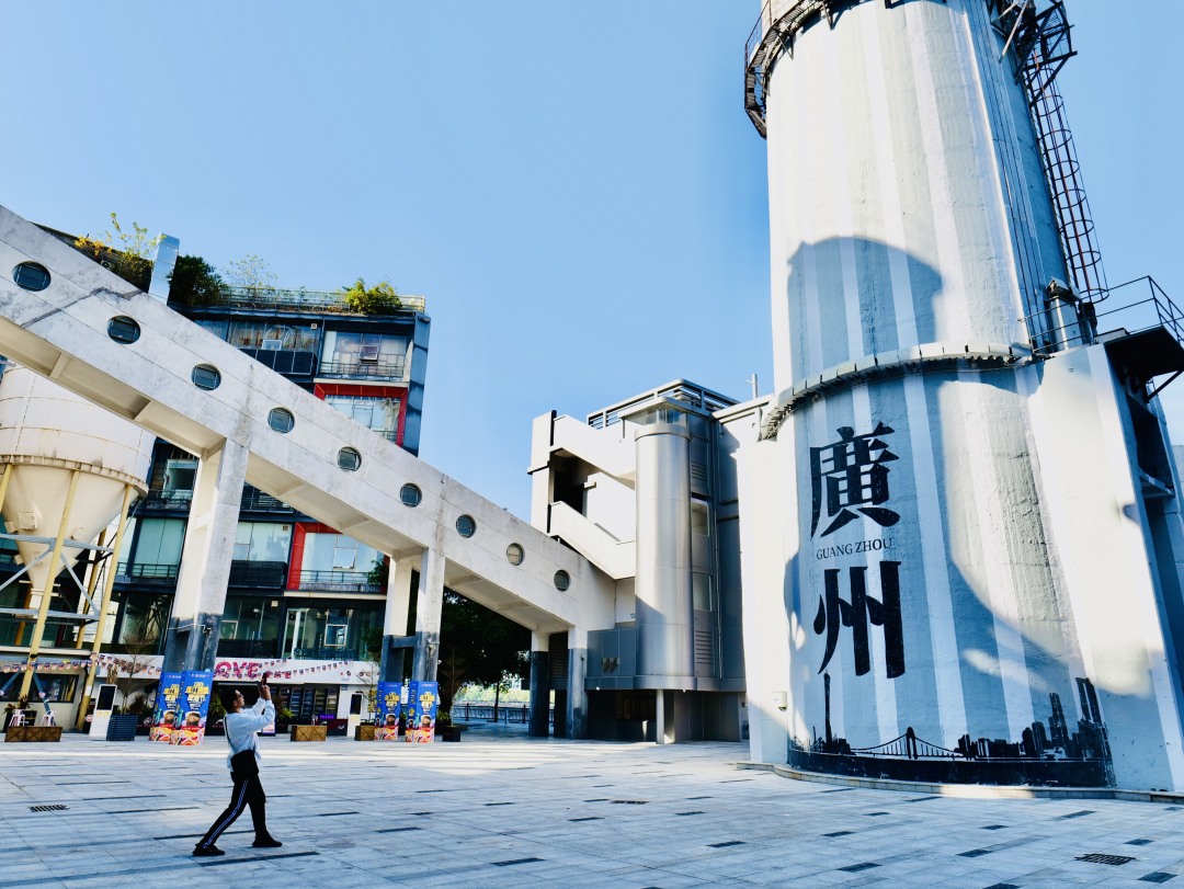 珠江琶醍啤酒文化创意艺术区里,一座高耸的烟囱上,“广州”二字格外醒目。
