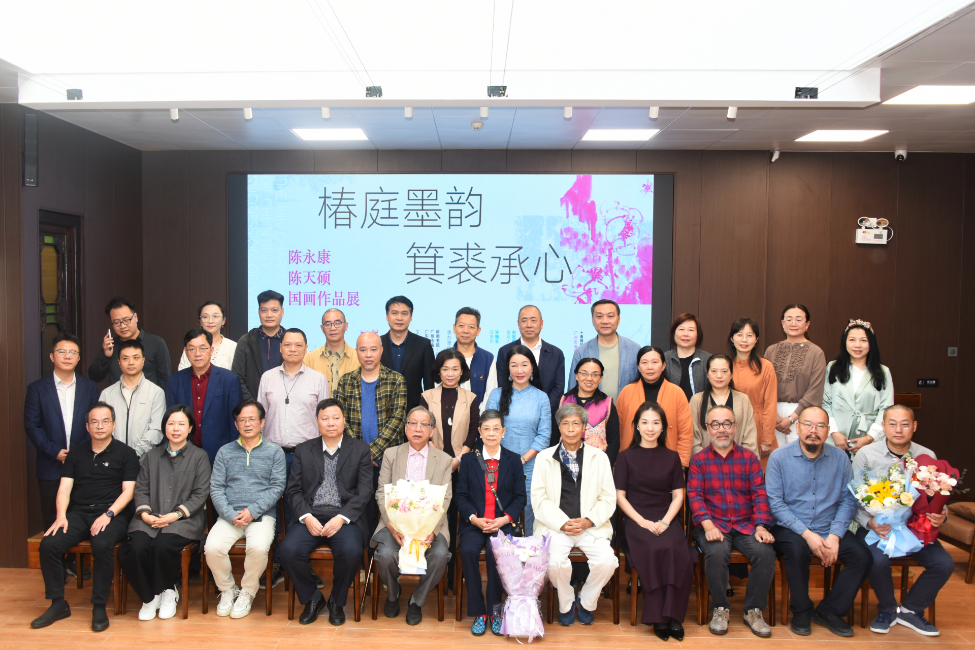 2025年12月19日,“椿庭墨韵·箕裘承心——陈永康、陈天硕国画作品展”开幕式于十香园纪念馆举行。岭南画派创始人之一陈树人先生孙女陈静芬,广州画院原副院长李醒韬,广州画院副院长罗玉鑫等八十余位艺术家、学者及相关部门代表齐聚一堂,共同见证这场兼具家族传承与岭南文脉意义的艺术盛宴。