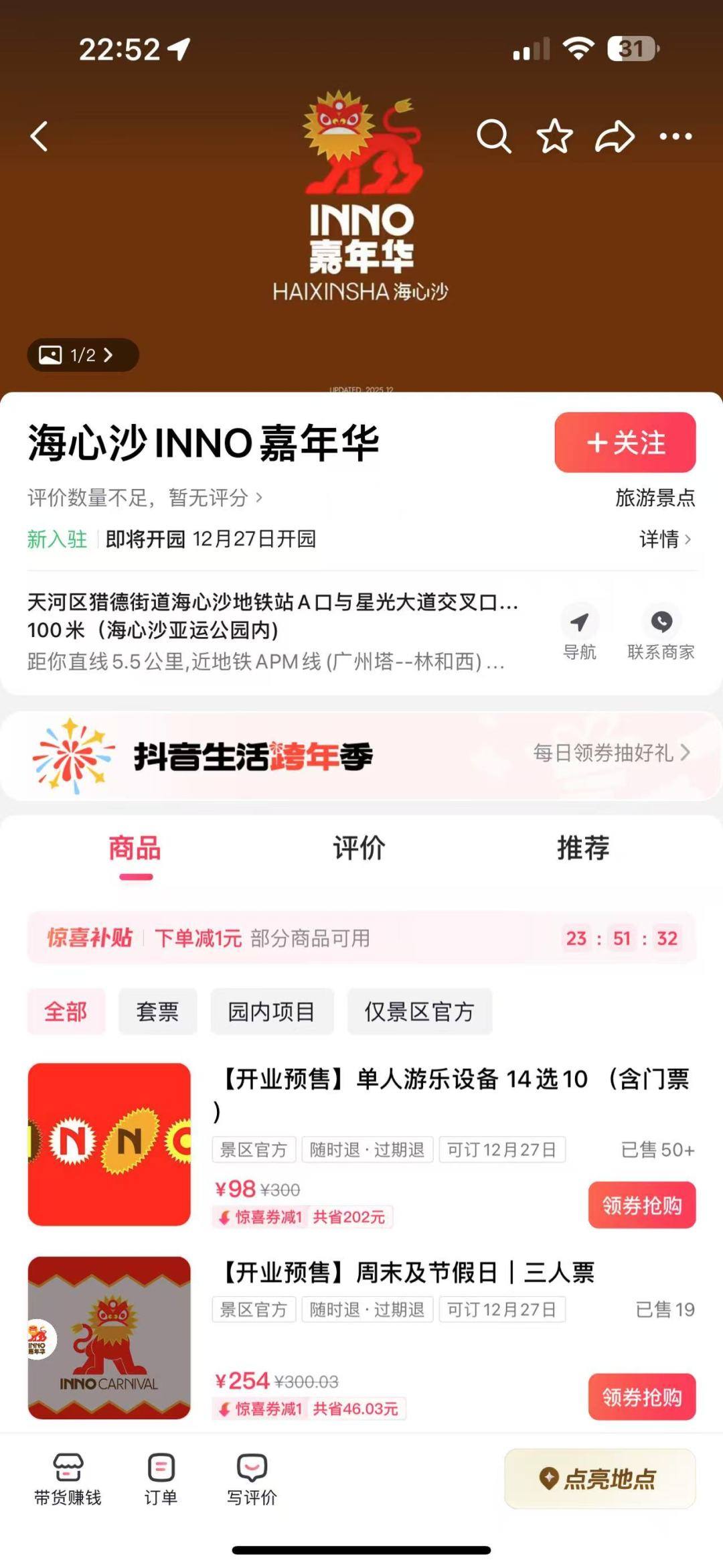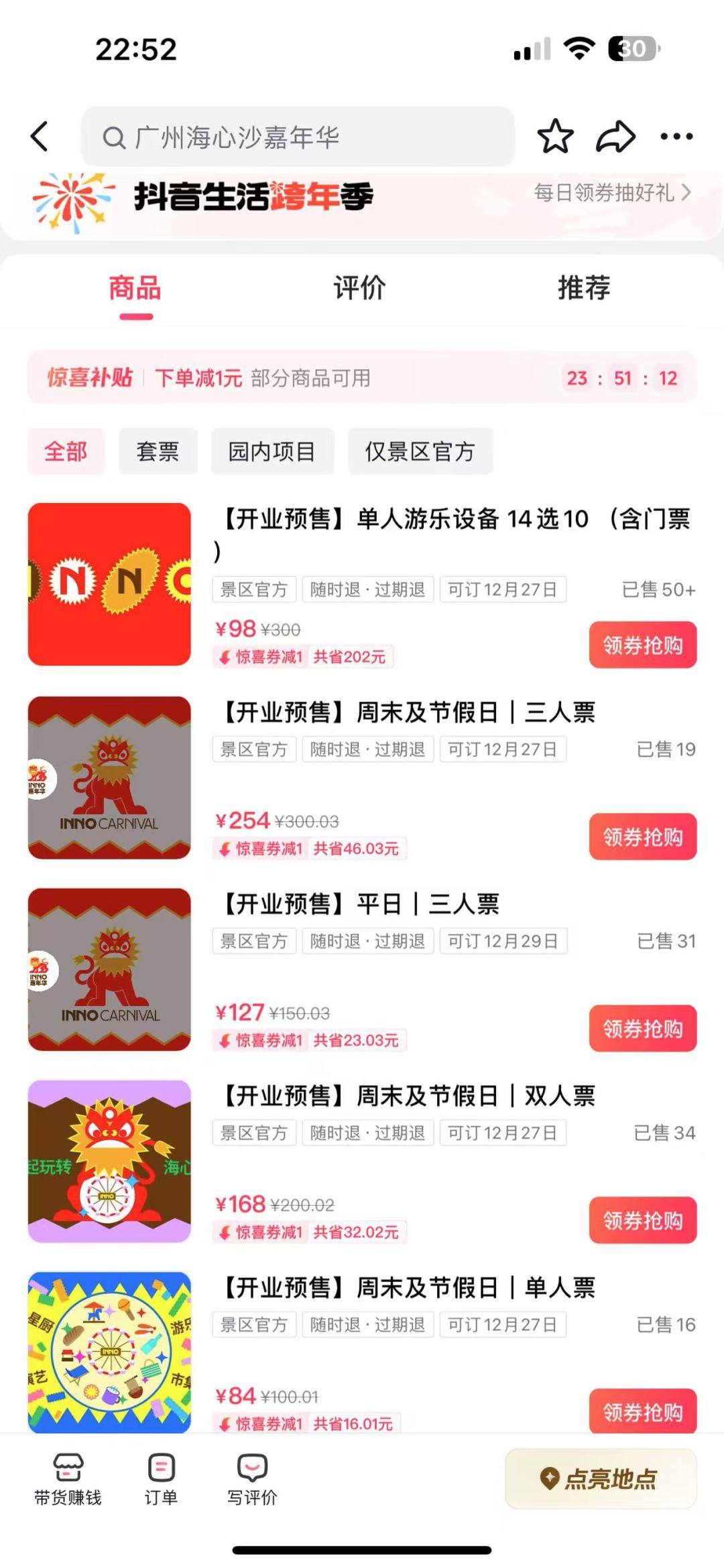 市民游客可在“海心沙INNO嘉年华”官方小程序、“海心沙INNO嘉年华”官方抖音号上购票。另外,平日和节假日门票均有组合双人票/三人票,套票购买会更优惠。“海心沙INNO嘉年华”官方抖音号门票预售也有优惠折扣,具体以官方小程序和官方抖音号票务详情为准。