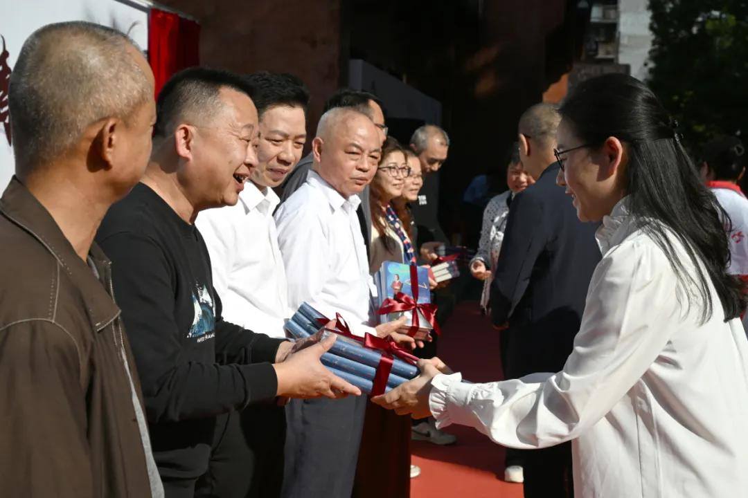 随后举行的《粤剧名家艺术系列·丁凡》图书捐赠活动将现场气氛推向高潮。丁凡与曾小敏以及广东粤剧院副院长张晋琼共同作为捐赠方代表,将图书捐赠给德庆县政府、县文联、县图书馆、县文化馆、县曲艺协会及广东亚视演艺职业学院、香山中学、孔子学校等多家单位,相关单位代表上台接受赠书。