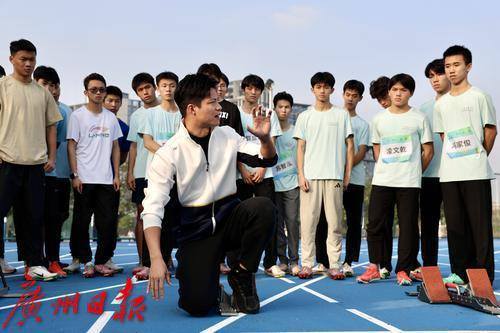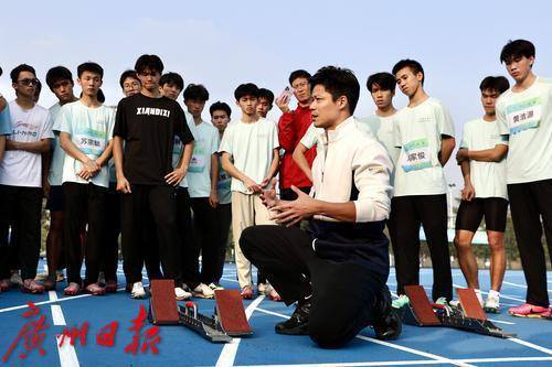 亚洲男子百米纪录保持者、暨南大学体育学院院长、本月刚刚宣布退役的“亚洲飞人”苏炳添亮相开营仪式上的冠军面对面活动,在勉励学员们积极训练奋发向上的同时,他还在田径场亲自指导学员们的起跑动作,身体力行推动广东田径后备人才培养。