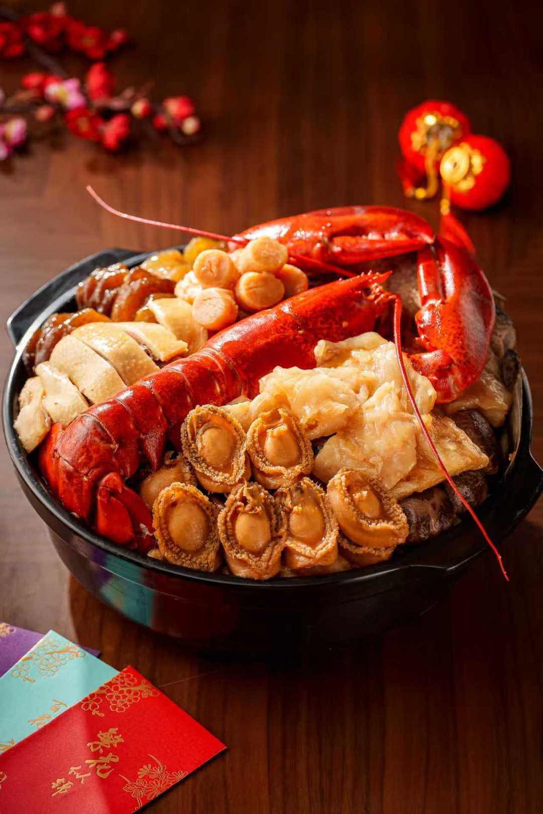 如意吉祥盆菜(4人份)延续传统盆菜制作精髓,鲍鱼、海参、蚝豉等食材的处理均遵循古法;福气满盆盆菜(6人份)有多道经典广府菜;霸气龙皇盆菜(8人份)则在传统基础上创新,加入波士顿龙虾等海鲜,体现广府饮食文化“海纳百川”的特质。