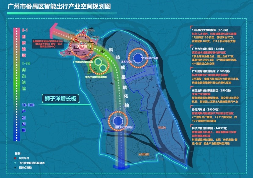 “0到1”的突破,在大学城科技园内完成,这里聚焦概念验证、小试孵化,扶持最初的火花落地生根。“1到10”的放大,交由环大学城科技成果转化带上的国际科技创新城、东西庄未来产业科技园承接,让成果在此熟化、加速。“10到100”的飞跃,则在43.5平方公里的番禺汽车城和狮子洋智造创新园实现,为成熟科技成果提供产业化的广阔舞台,完成从“制造”到“智造”乃至“创造”的升级。